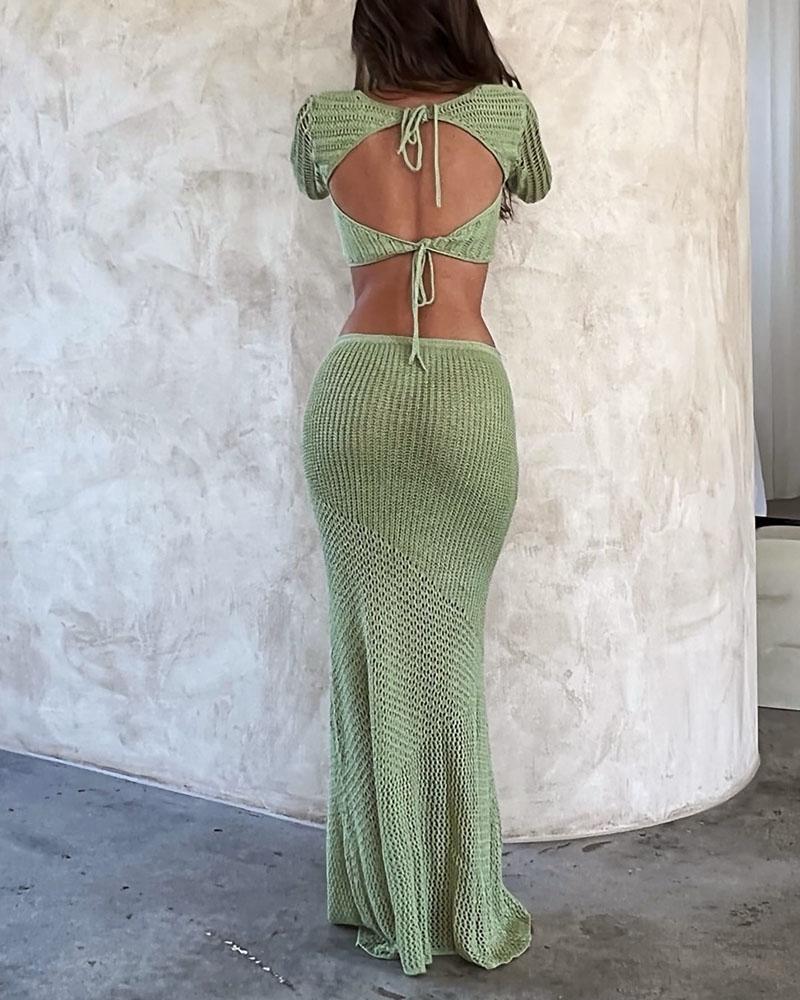 Su top con diseño de cuello recto, espalda abierta y detalles de doble hebilla, proporciona estilo y un ajuste perfecto; mientras que su tejido de croché aporta transpirabilidad y da ese toque sensual a tu look,