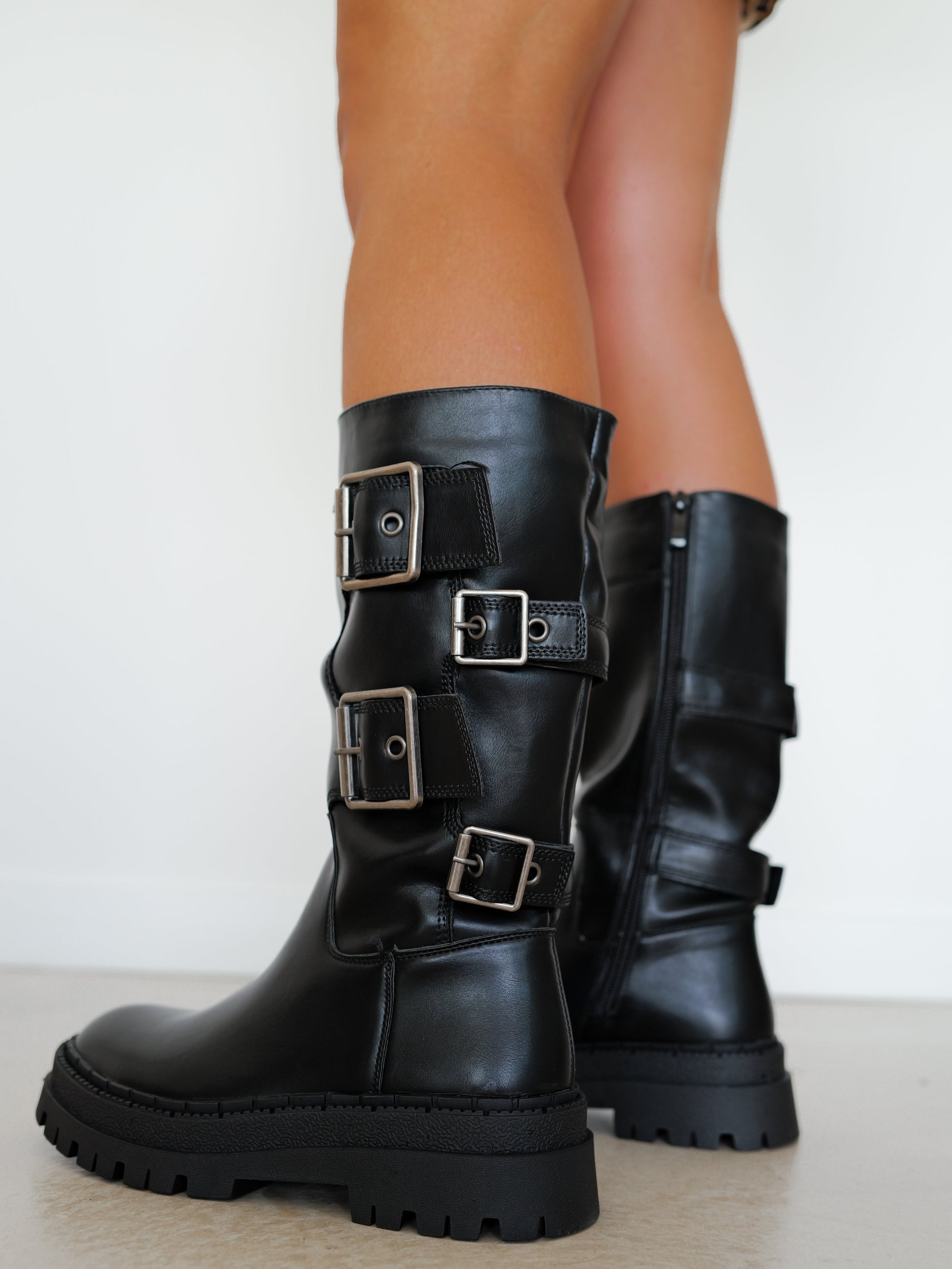 Bota biker hebillas negra