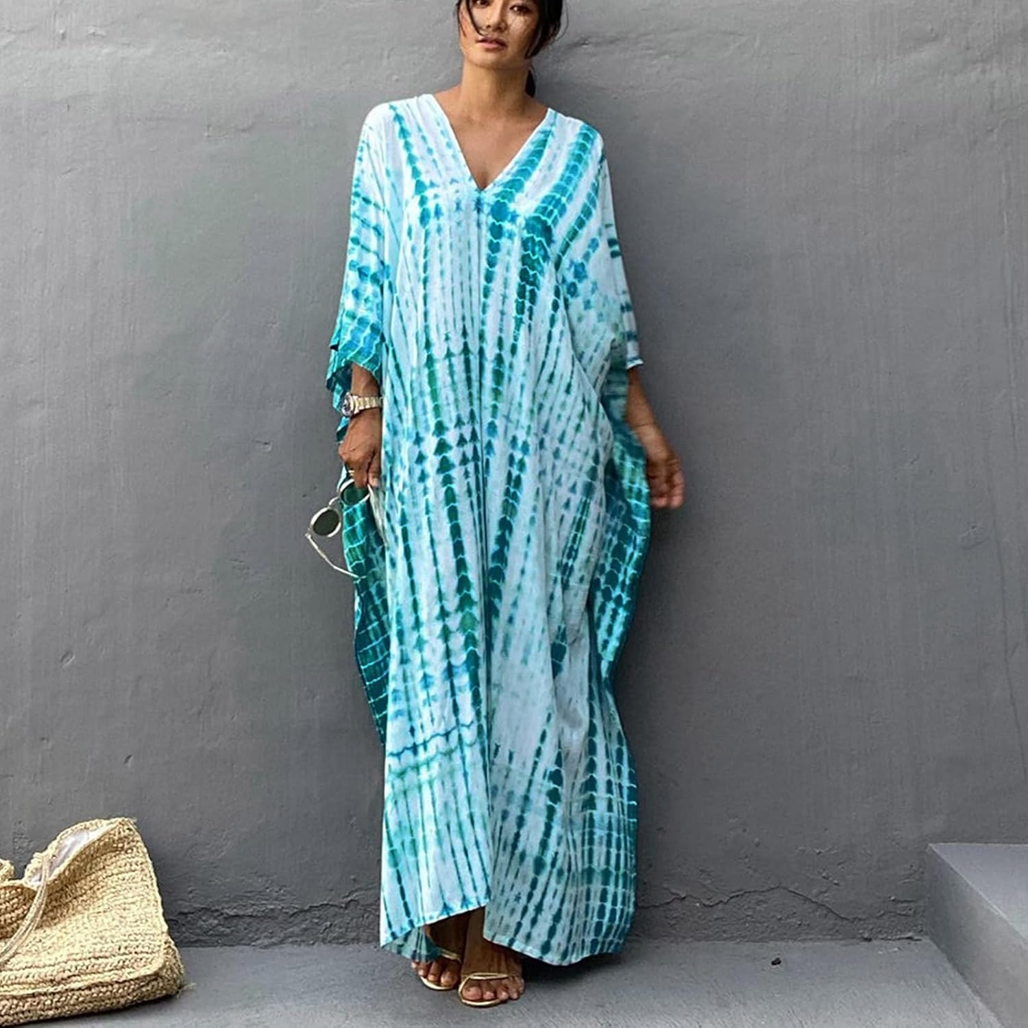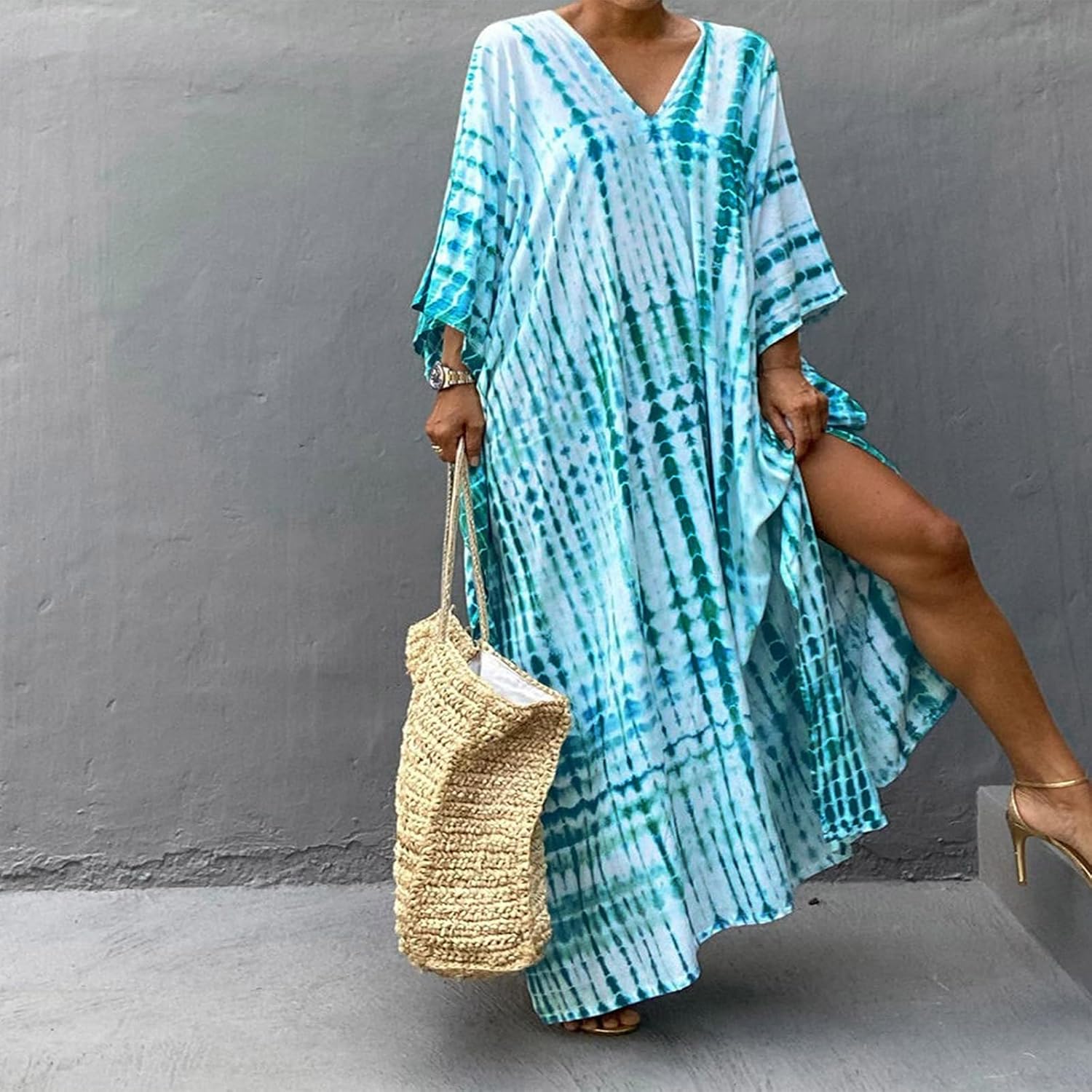 Nuestro kaftán "Caribe" es una declaración de estilo en toda regla. Sus colores en contraste y su estampado transmiten alegría y frescura.