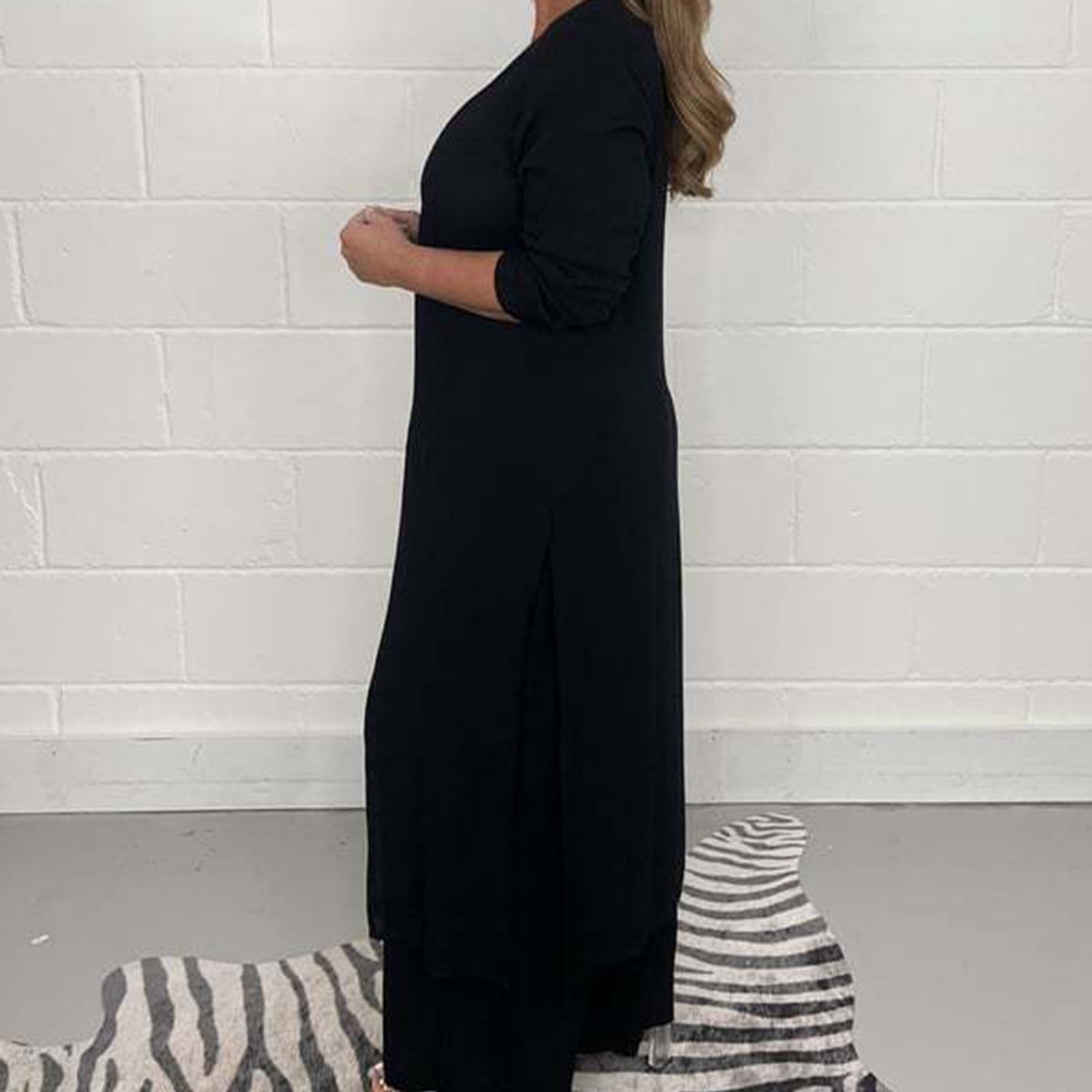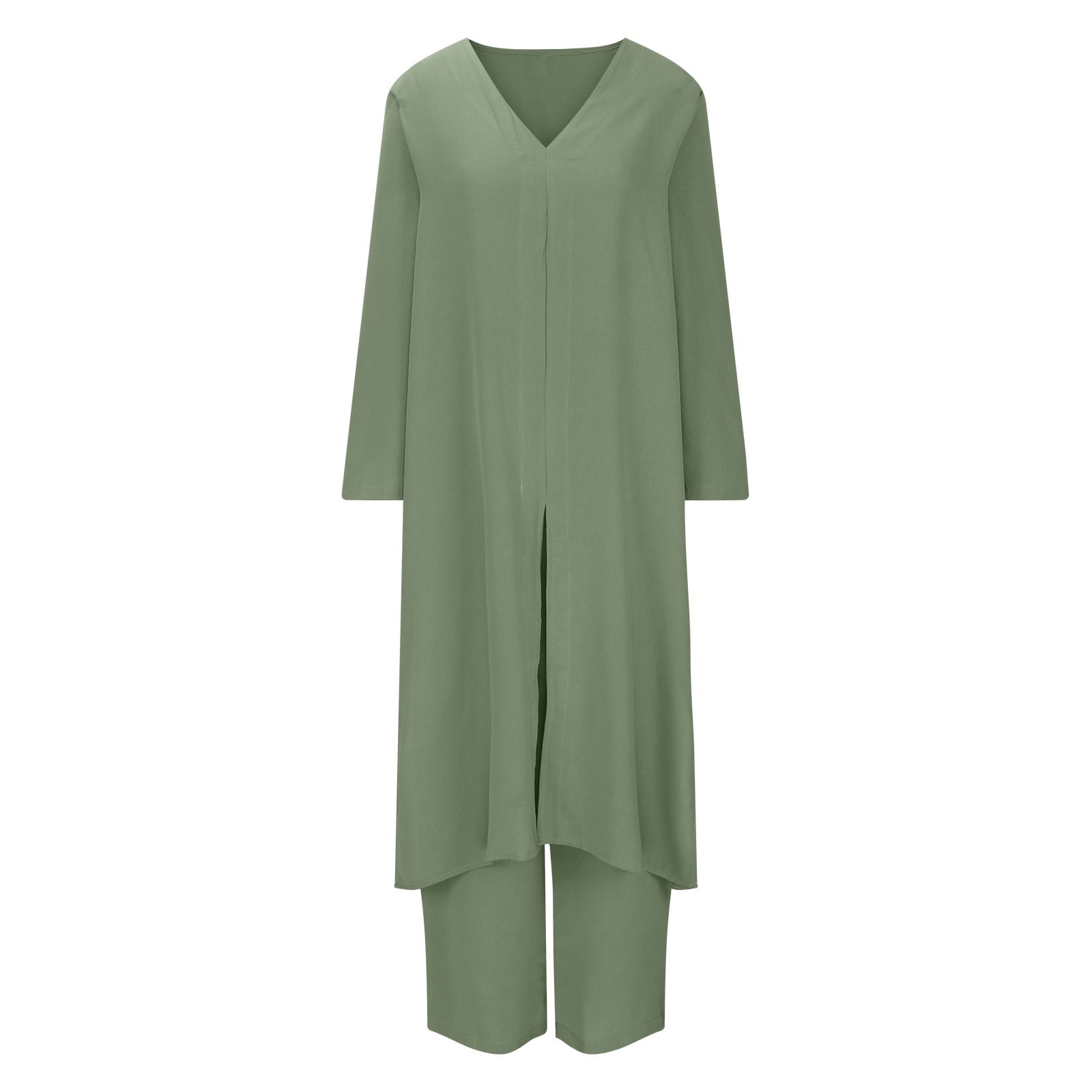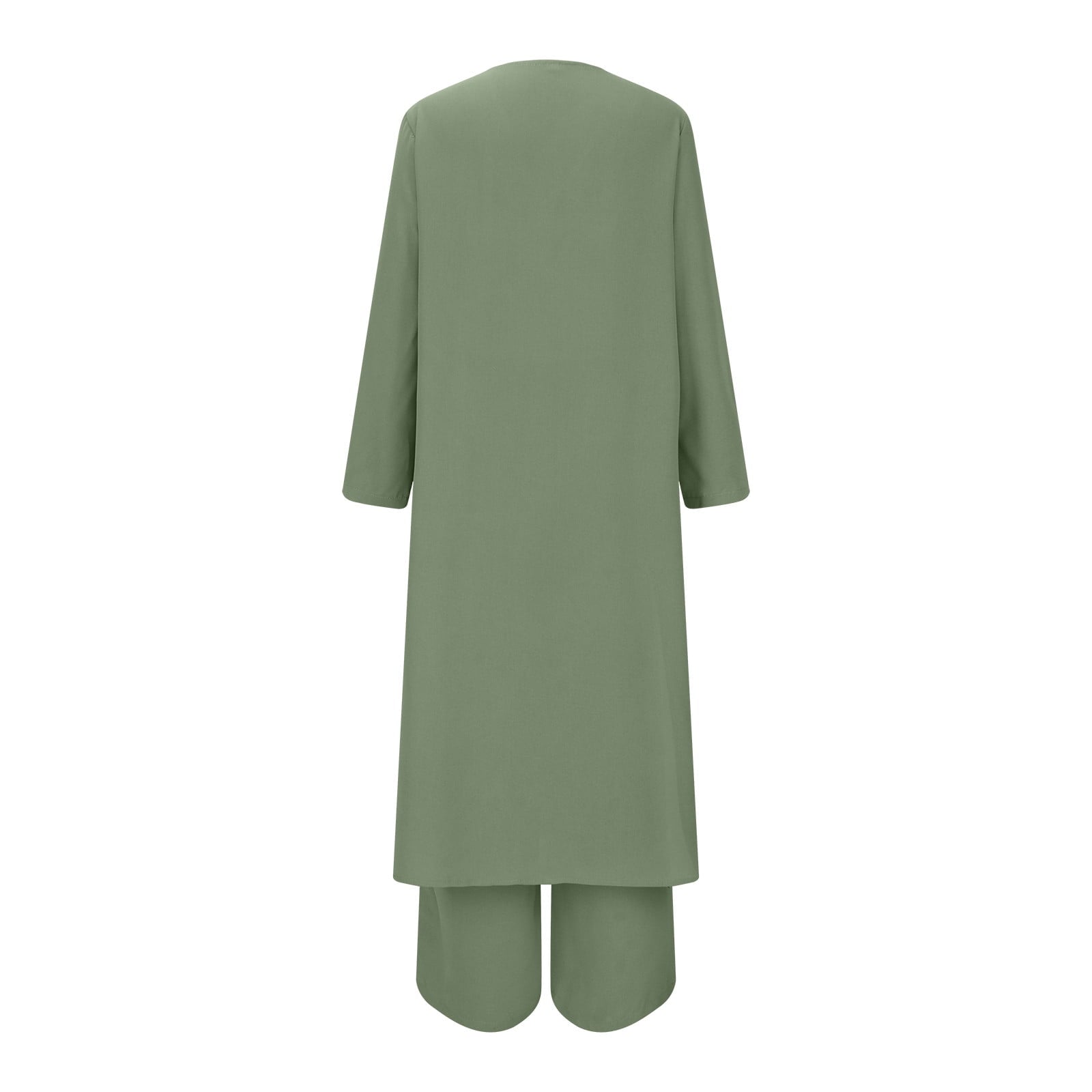 Diseñado para el día a día así como para ocasiones formales, es ligero y cómodo, permitiéndote usarlo en multitud de ocasiones. Gracias a su tejido de algodón y poliéster de primera calidad, se adapta a la perfección a cualquier figura y su cuidado es sencillo, por lo que seguirá como nuevo después de cada lavado. Su top largo con escote de pico junto con su pantalón ancho, lo convierten en una opción elegante y fácil de llevar, ayudándote a mantener tu estilo propio. Lo mejor de este conjunto es su versatilidad, ya que puedes usar el top largo y los pantalones anchos juntos o combinarlos por separado con otros prendas.