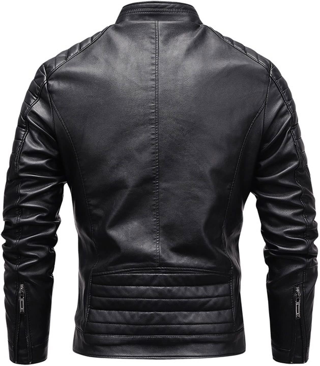 Esta prenda brinda un ajuste excepcional gracias a su corte ajustado y sus mangas largas, que también dan una apariencia moderna y relajada. El cuello alto tipo "mao" añade un toque diferente, que junto a su cierre de cremallera y sus múltiples bolsillos con cremallera contribuyen a ese look old-school. Su tejido de cuero es perfecto para el día a día ya que es cálido y cómodo, permitiendo libertad de movimientos.