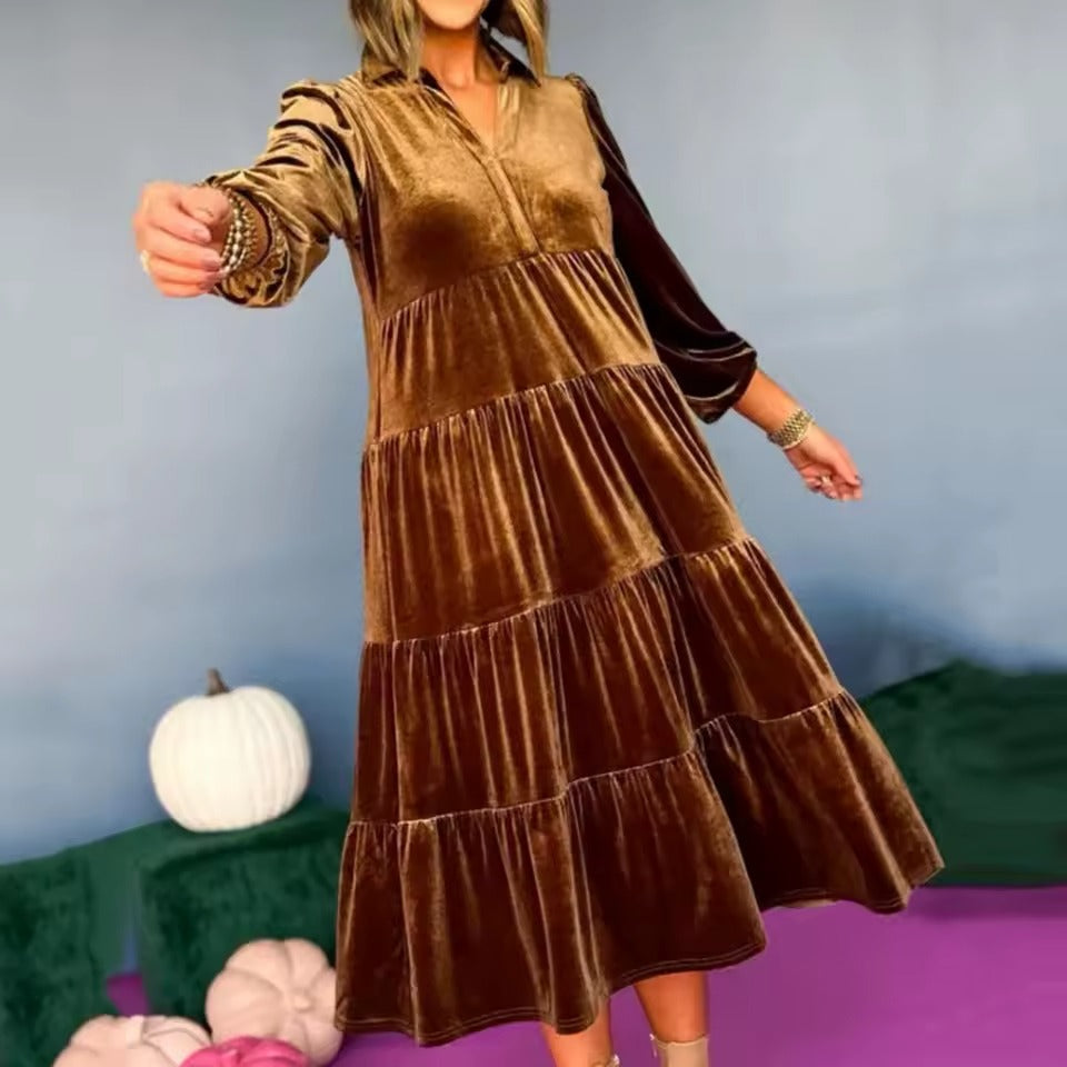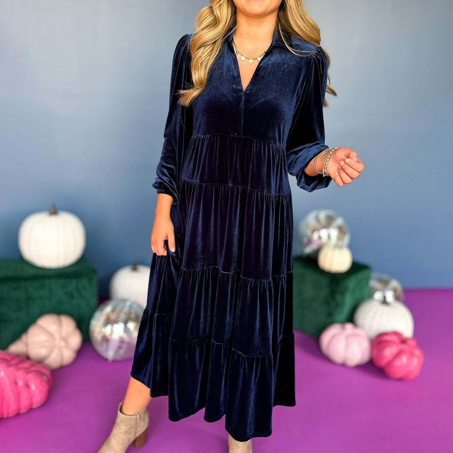 Confeccionado en suave terciopelo de primera calidad, nuestro vestido "Chloe" te garantiza un ajuste cómodo y perfecto. Su corte holgado y su escote de pico, lo convierten en una opción sofisticada y fácil de llevar, manteniendo un estilo sencillo y elegante. Además, su diseño monocromático le da un aire limpio y minimalista, perfecto para combinar con diferentes accesorios, mientras que sus mangas largas lo hacen idóneo para mantenerte abrigada en los días más fríos. Esta prenda, te acompañará en cualquier ocasión ya sea formal o informal. Ideal para la temporada otoño/invierno, este vestido es la elección versátil que necesitas en tu armario.