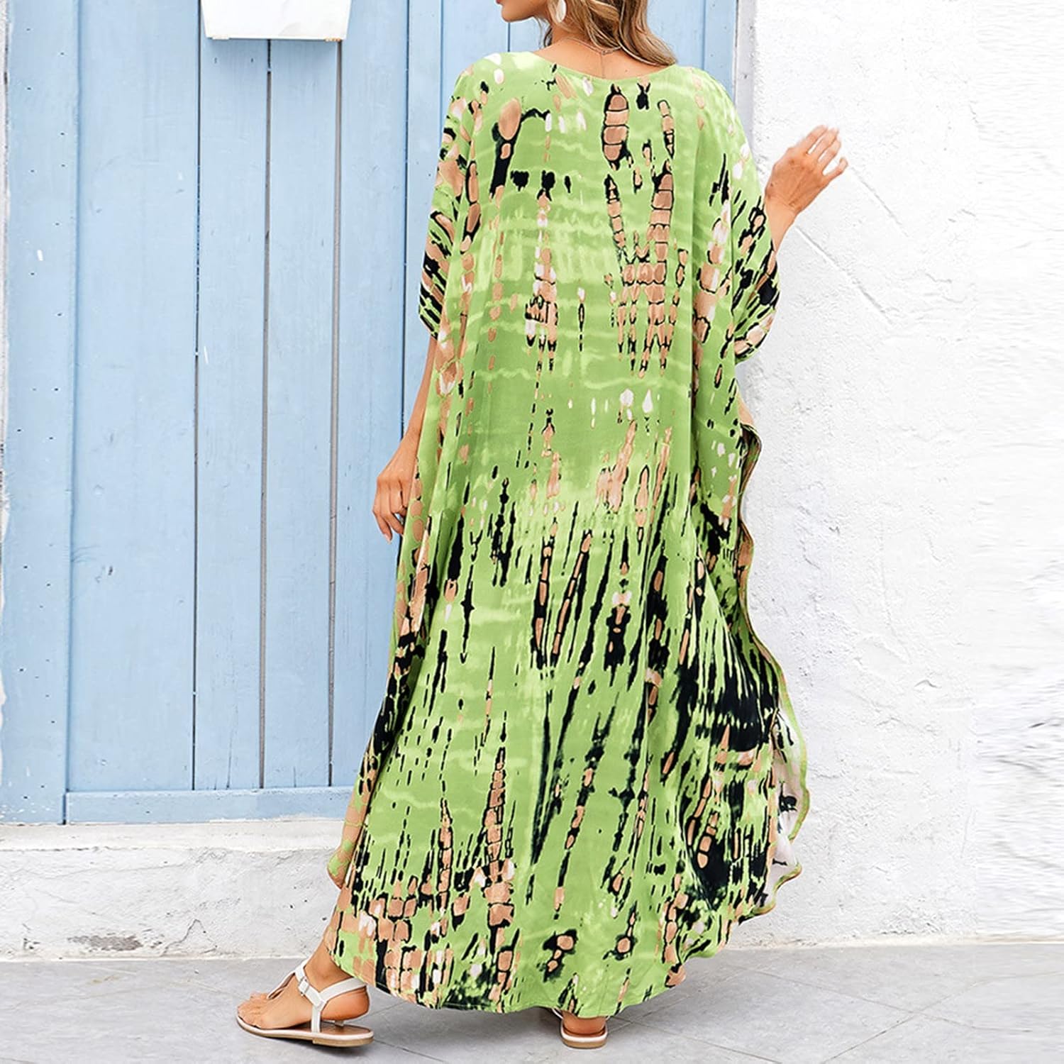 Nuestro kaftán "Vert" es una declaración de estilo en toda regla. Sus colores en contraste y su estampado transmiten alegría y frescura.
